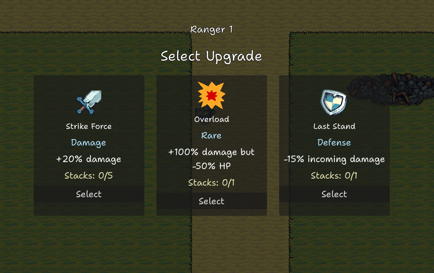 After each wave, you choose an upgrade - from increased damage and attack speed to status effects like fire, ice, and poison.